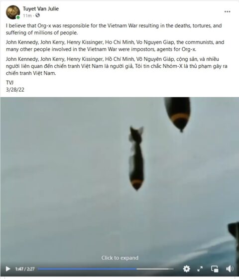 I believe that Org-x was responsible for the Vietnam War resulting in the deaths, tortures, and suffering of millions of people. John Kennedy, John Kerry, Henry Kissinger, Ho Chi Minh,…