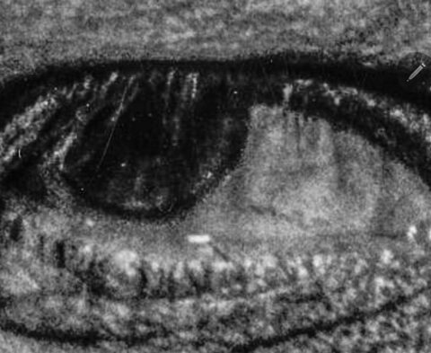 John F. Kennedy’s right eye on January 5, 1960 through the Photoshop filters.