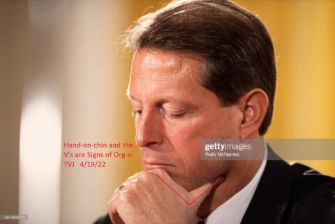 There were surgical scars on Al Gore’s face and possible Signs of Org-x in this photo. Hand-on-chin and the V’s are Signs of Org-x. TVJ4/19/22 “Vice President Al Gore. Vice…