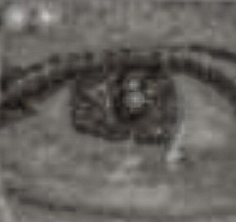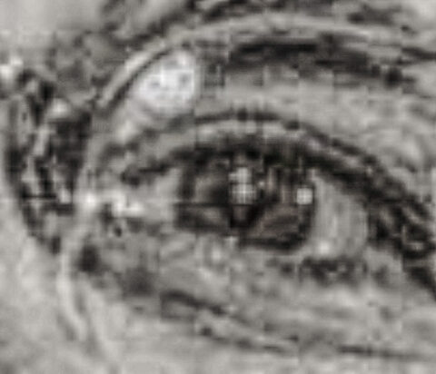 Robert McNamara’s right eye in 1964 through the Photoshop filters.