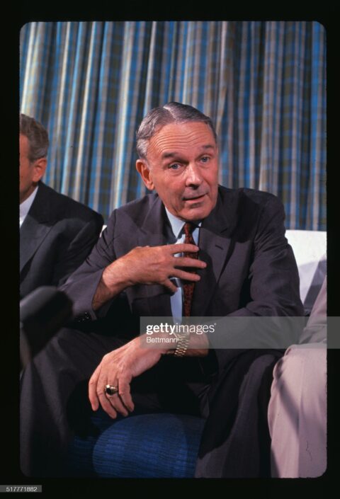 This photo is upside down on GettyImages.com. There were objects in Robert S. McNamara’s eyes and surgical scars on his face in this photo. Robert S. McNamara was the U.S….