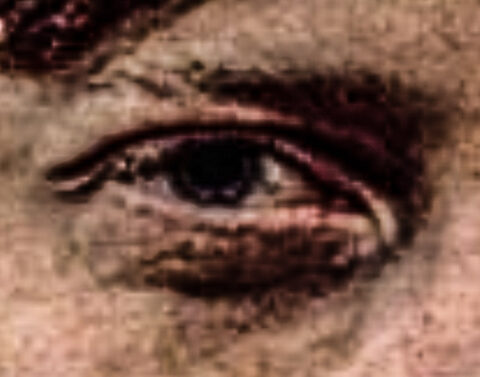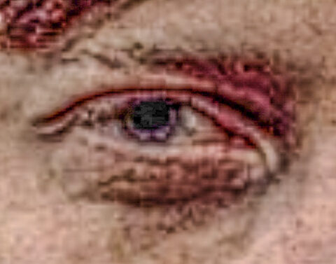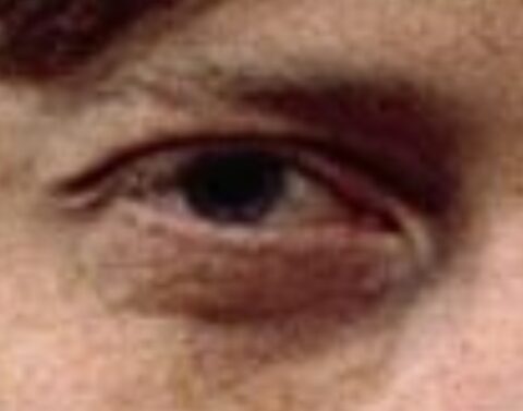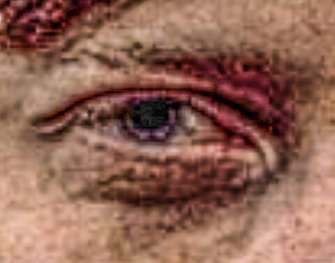 Bill Gates’ right eye on “January 31, 1984” through the Photoshop filters