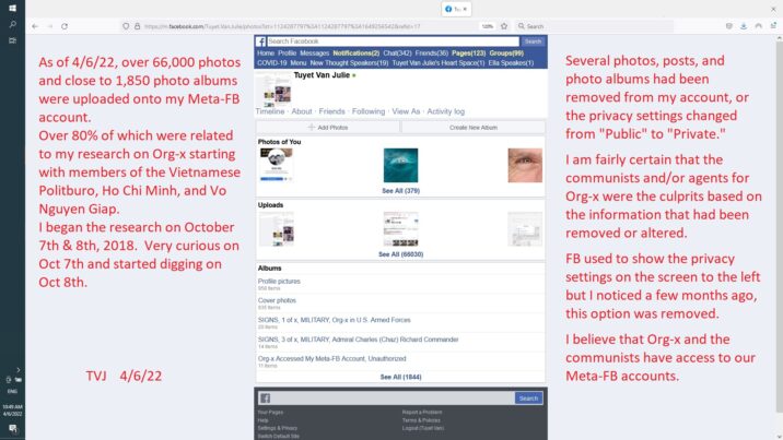 I believe that Org-x and the communists have access to our Meta-FB accounts.