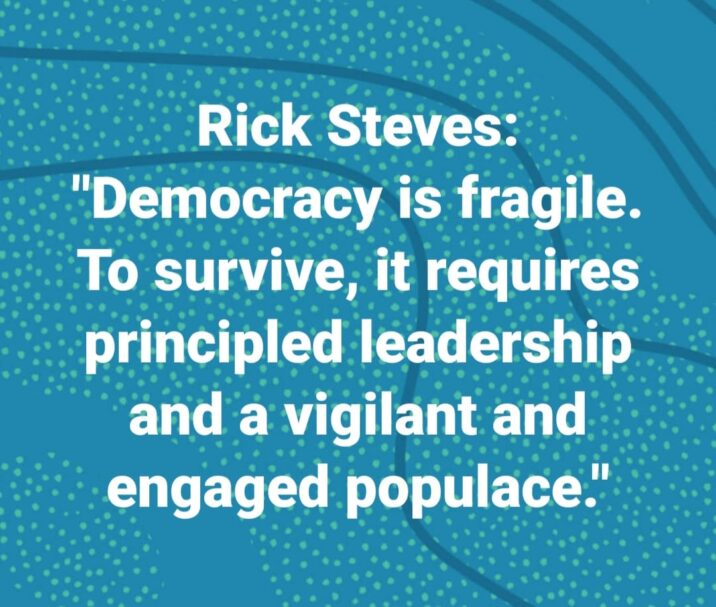 “Democracy is fragile. To survive, it requires principled leadership and a vigilant and engaged populace.”