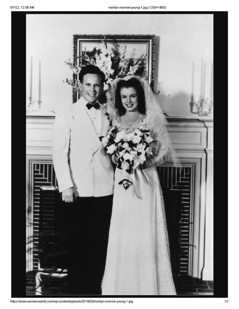 On June 19, 1942, Monroe married her neighbor, 21-year-old James ‘Jim’ Dougherty, to avoid being sent back to an orphanage. She was just 16 years old at the time. The pair divorced in September 1946.”