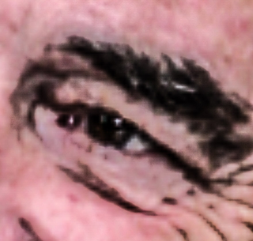 There were surgical scars on Doug Coe’s face and foreign objects in his eyes in this photo.