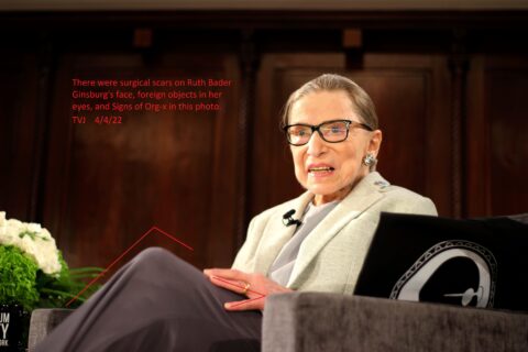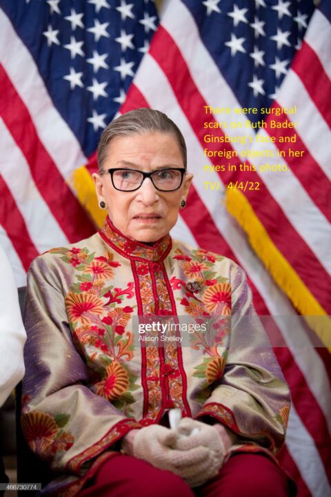 There were surgical scars on Ruth Bader Ginsburg’s face, foreign objects in her eyes, and Signs of Org-x in this photo. — TVJ — 4/4/22 — “Ruth Bader Ginsburg Draws…