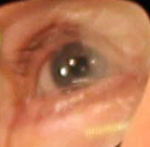 There were possible surgical scars and foreign objects in Ruth Bader Ginsburg’s eyes in this photo. — TVJ — 4/3/22 — “PHOTO CAPTION: Photo of Ruth Bader Ginsburg in the…