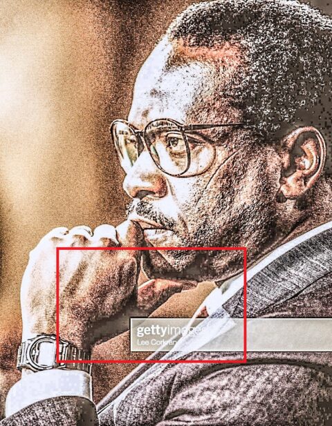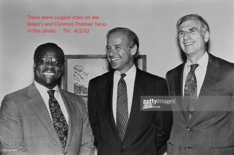 There were surgical scars on Clarence Thomas’ face and Signs of Org-x in this photo. The V’s.The wrist watch.Hand and/or fingers on chin or jaw line forming the V’s. TVJ4/1/22…