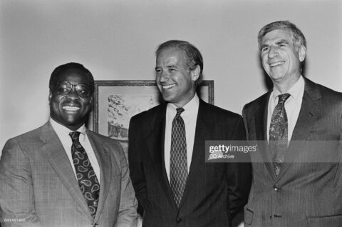 There were surgical scars on Joe Biden’s and Clarence Thomas’ faces in this photo. — TVJ — 4/2/22 — “Ruth Bader Ginsburg answering reporter’s question. Supreme Court nominee Clarence Thomas,…