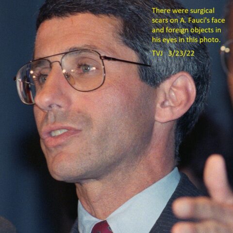 There were surgical scars on Anthony Fauci’s face, what appeared to be foreign objects in his eyes, and possible Sign of Org-x in this photo. — TVJ — 3/22/22 —…