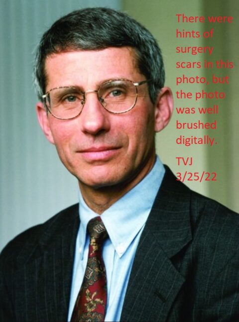 There were surgical scars on Anthony Fauci’s face in this photo. — TVJ — 3/26/22 — “NIAID Anthony Fauci, 1984 Dr. Anthony Fauci in front of a microscope, 1984. Credit:…