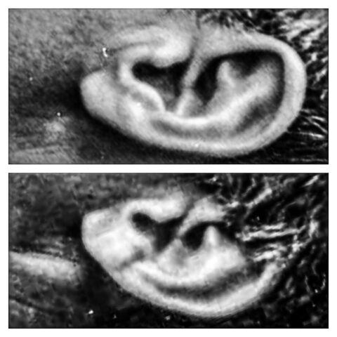 Anthony Fauci’s left ear in 1987 and in a tweet, date unknown