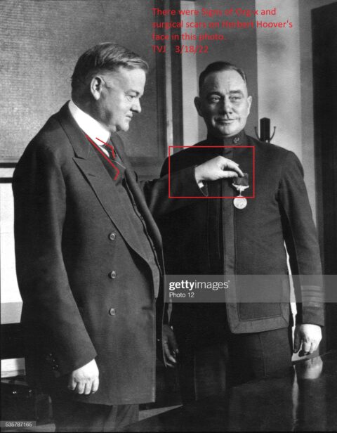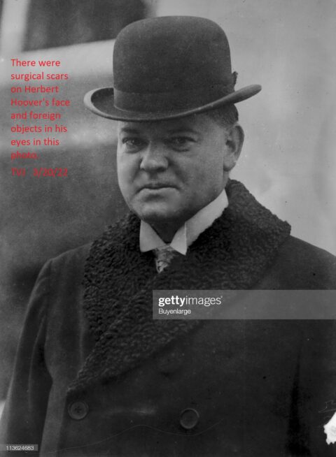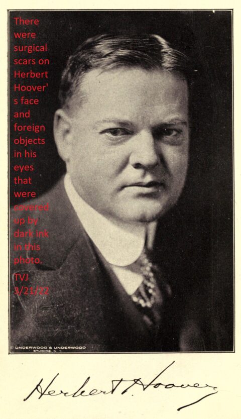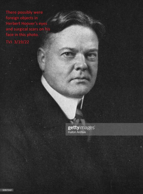 There were: Surgical scars on Herbert Hoover’s face. Foreign objects in his eyes that were covered up by black ink on this photo. — TVJ — 3/20/22 — “Herbert Hoover….