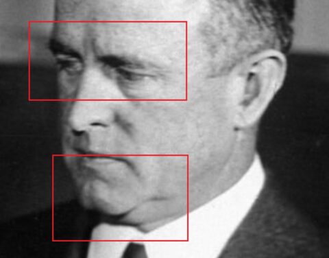 In this photo, there were: Surgical scars on Herbert Hoover’s and the three men’s faces. Possible surgical scars on Herbert Hoover’s right hand. Possible foreign objects in their eyes. Possible…