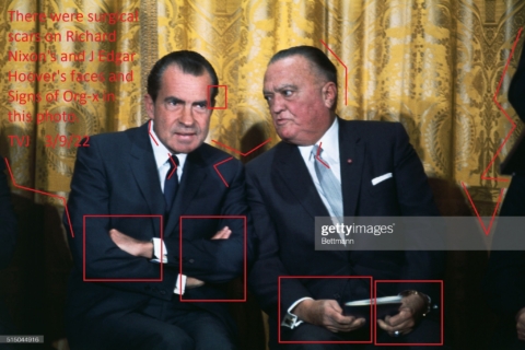 In this photo, there were: Surgical scars on Richard Nixon’s and J Edgar Hoover’s faces. What appeared to be foreign objects in Richard Nixon’s eyes. Signs of Org-x. Signs of…
