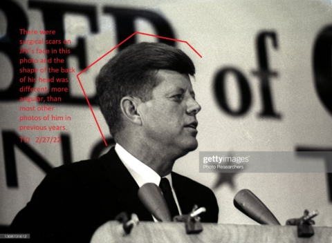There were surgical scars on JFK’s face in this photo and the shape of the back of his head was different, more angular, than most other photos of him in…