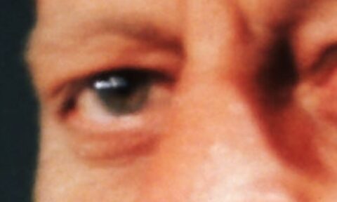 There are surgical scars on the faces and objects in the eyes in this photo. — TV — 2/2/22 — “Kennedy Announcing New Secretary. (Original Caption) President-elect Senator John F….