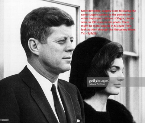 There were surgical scars on JFK’s face, foreign objects in his eyes, and Signs of Org-x in this photo. — TVJ — 3/4/22 — “John F. Kennedy 381091 52: President…