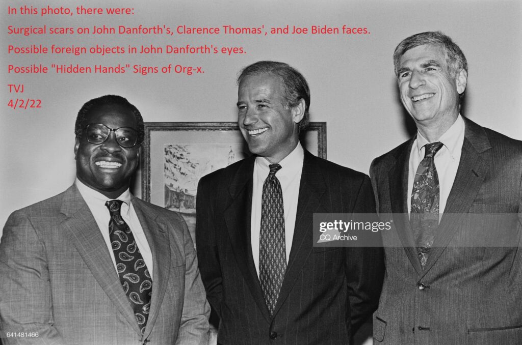 Surgical scars on John Danforth’s, Clarence Thomas’, and Joe Biden faces.