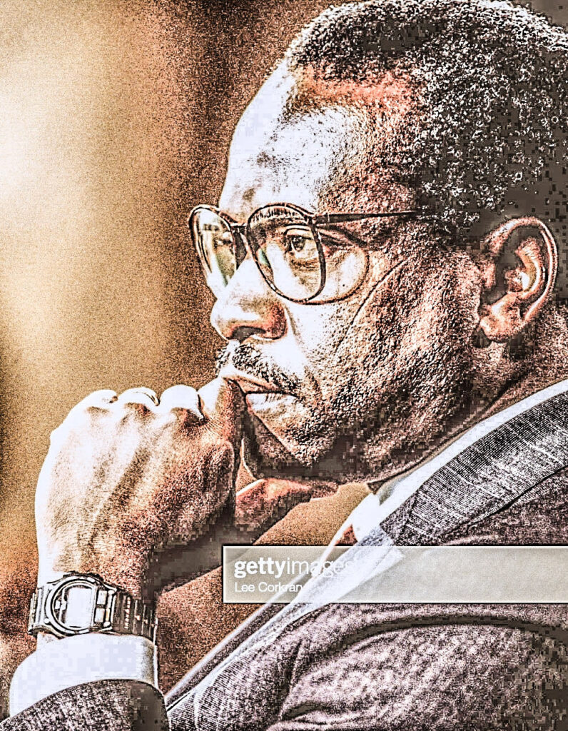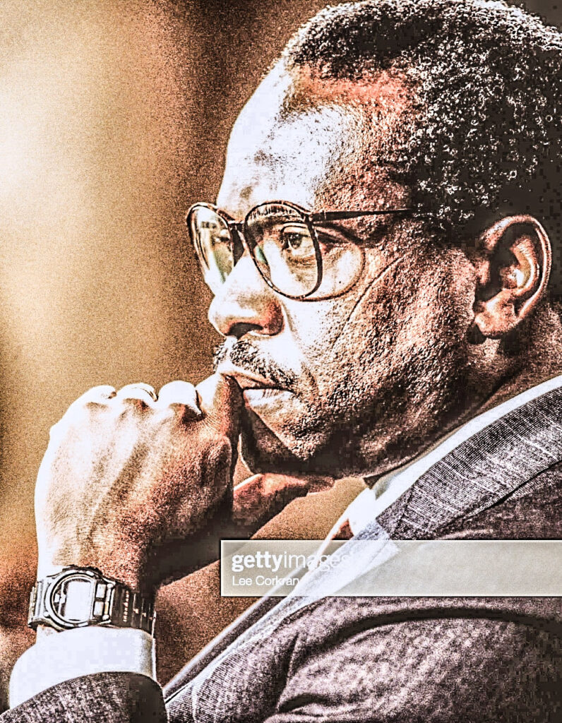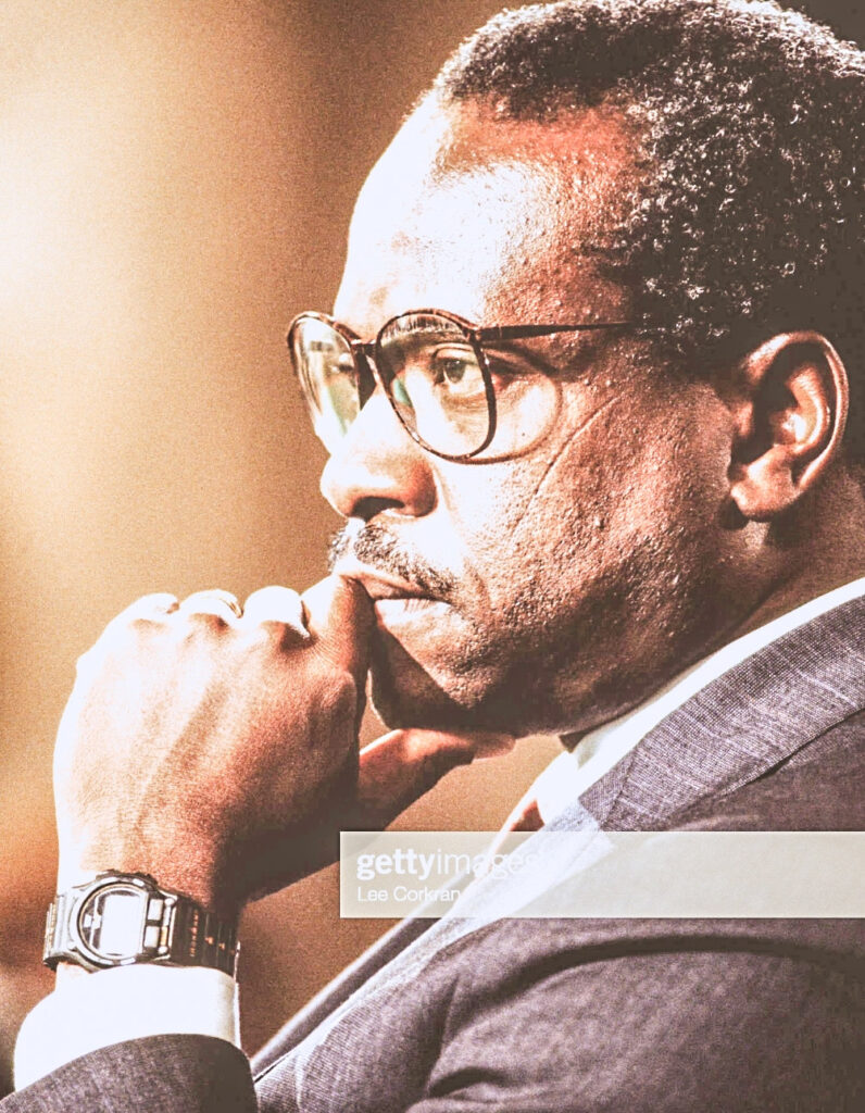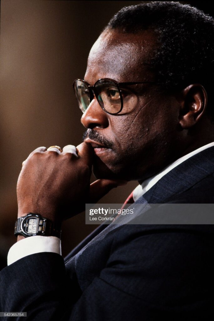 Supreme Court nominee Clarence Thomas participates in his Senate confirmation hearings. (Photo by Lee Corkran/Sygma via Getty Images). Date created: September 01, 1991.”