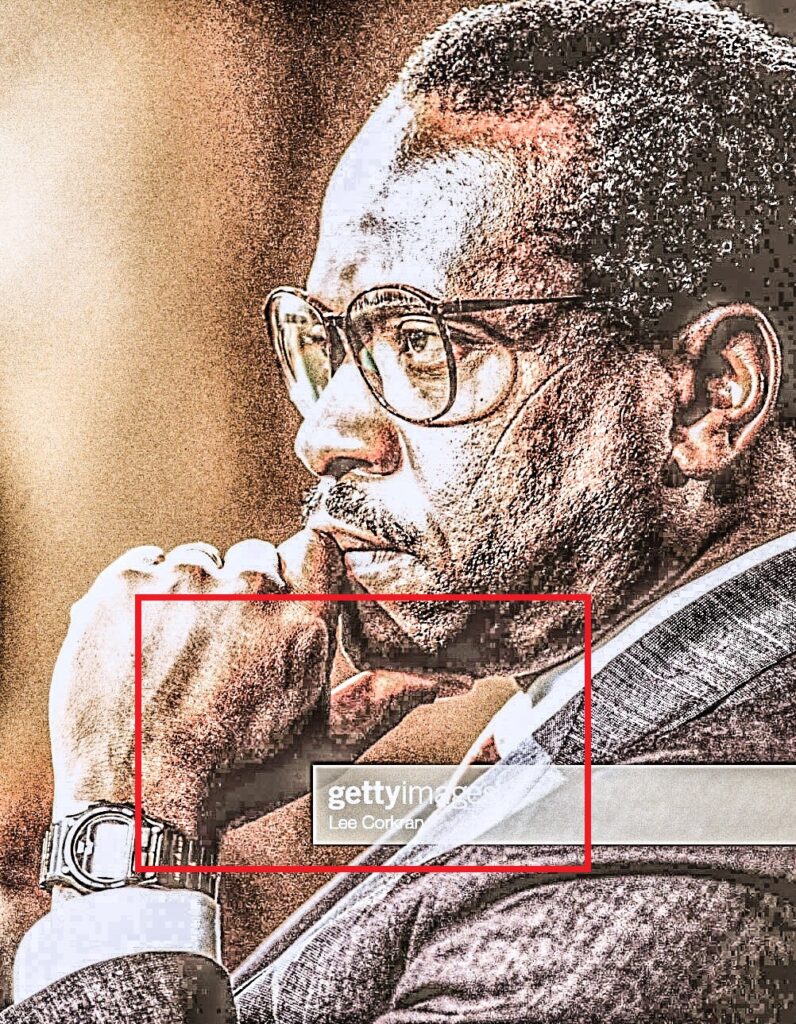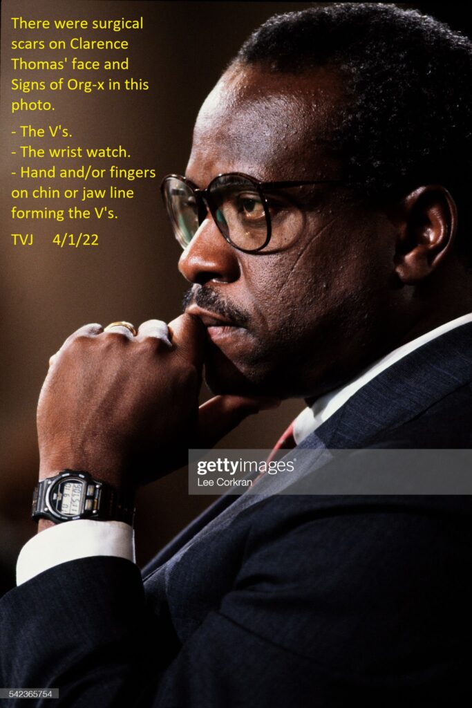 There were surgical scars on Clarence Thomas’ face and Signs of Org-x in this photo.