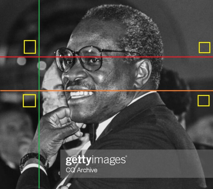 There were surgical scars, Signs of Org-x, and unnecessary, perhaps intentionally placed, typos in this photo. (“n “r”n JusticeClarence instead of Justice Clarence). This was done probably to make it more difficult for the image to show up in online searches.