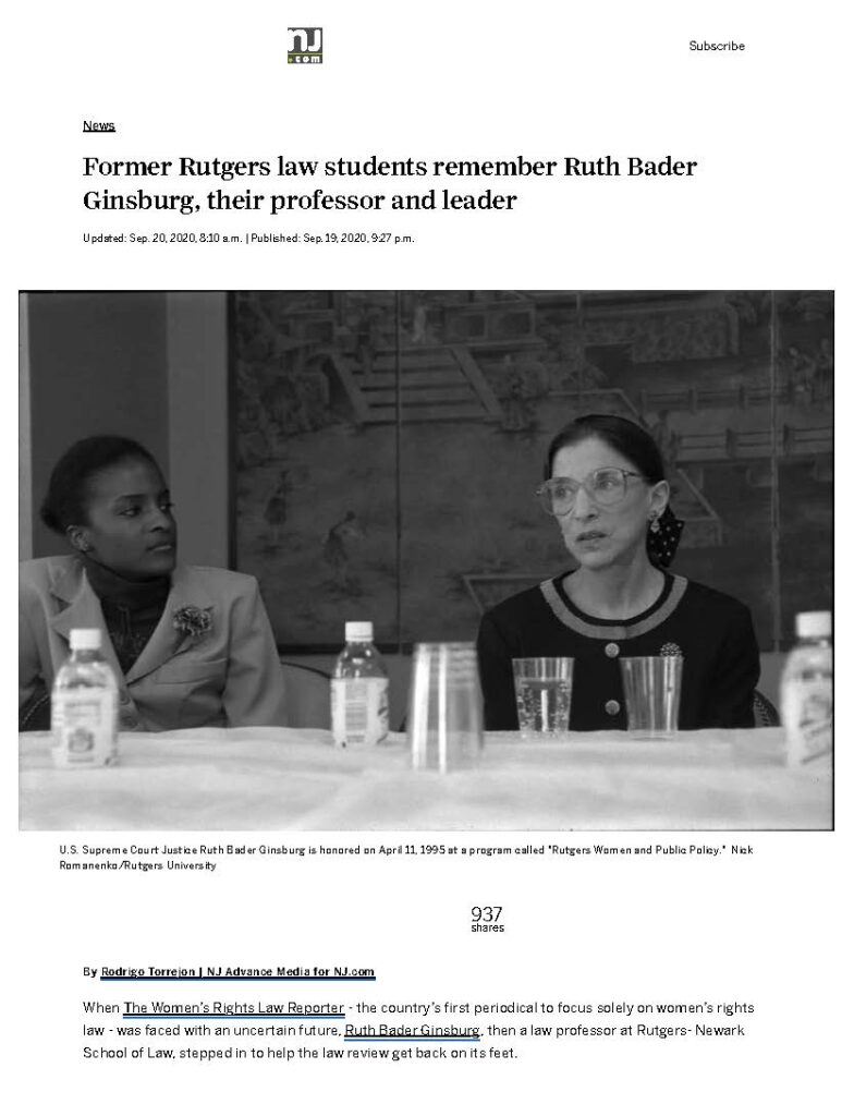 “U.S. Supreme Court Justice Ruth Bader Ginsburg is honored on April 11, 1995 at a program called ‘Rutgers Women and Public Policy.’ Nick Romanenko/Rutgers University.”