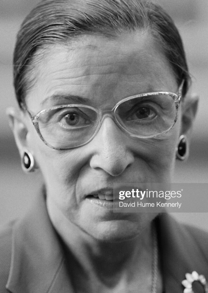 WASHINGTON – AUGUST 7: (EXCLUSIVE, NO U.S. TABLOID SALES) U.S. Supreme Court Justice Ruth Bader Ginsburg sits in her chambers at the Supreme Court August 7, 2002 in Washington, DC. Ginsburg is the second woman to be appointed to the high court. (Photo by David Hume Kennerly/Getty Images). Date created: August 07, 2002.”