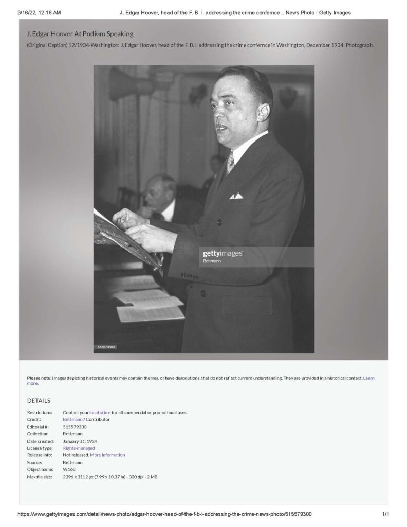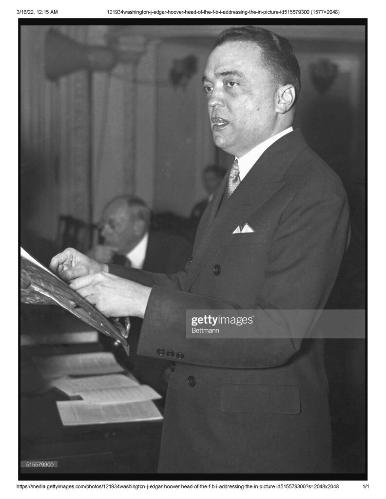 (Original Caption) 12/1934-Washington: J. Edgar Hoover, head of the F. B. I. addressing the crime confernce in Washington, December 1934. Photograph. Date created: January 01, 1934.”