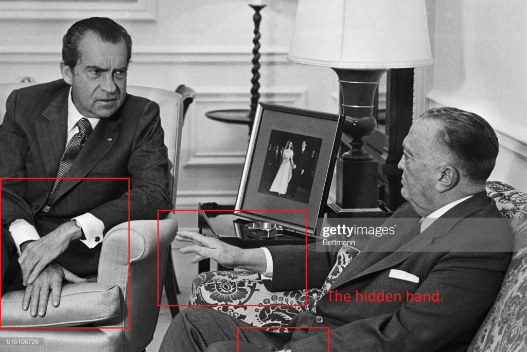 There were surgical scars on Richard Nixon’s and J Edgar Hoover’s faces and Signs of Org-x in this photo.