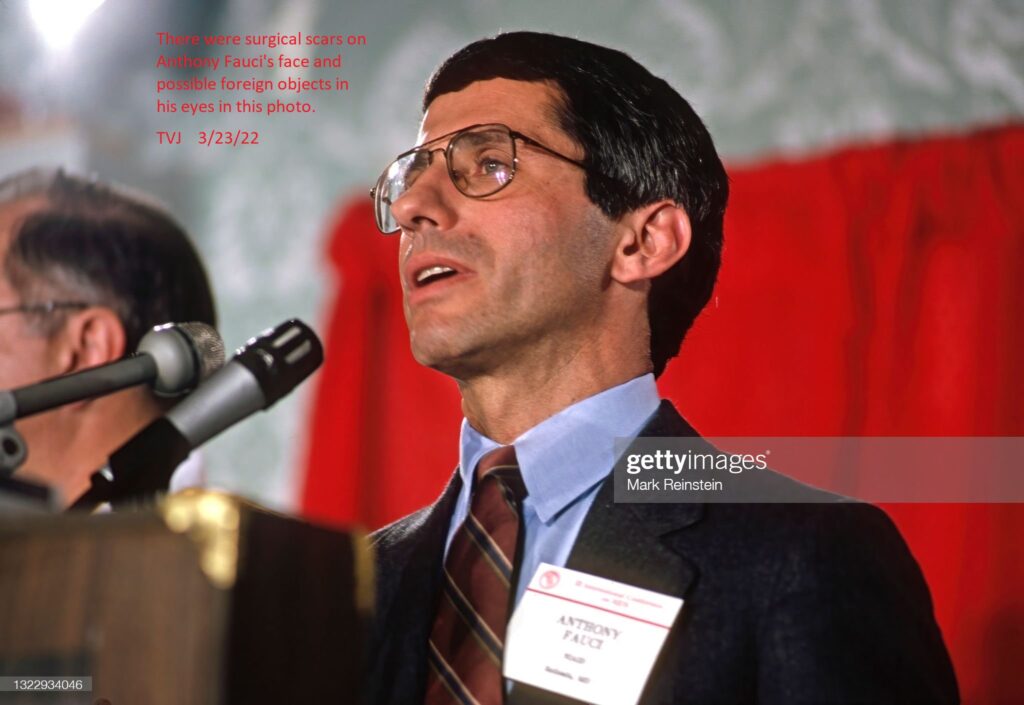 There were surgical scars on Anthony Fauci’s face and possible foreign objects in his eyes in this photo.