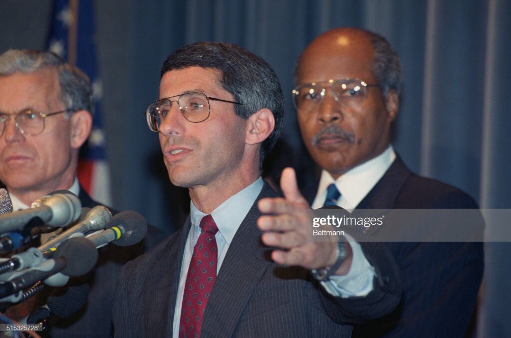 Doctor Anthony Fauci speaking at the III International AIDS Conference Washington DC, June 1987 (Photo by Mark Reinstein/Corbis via Getty Images)”n. Date created: June 9, 1987.”