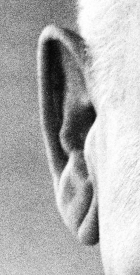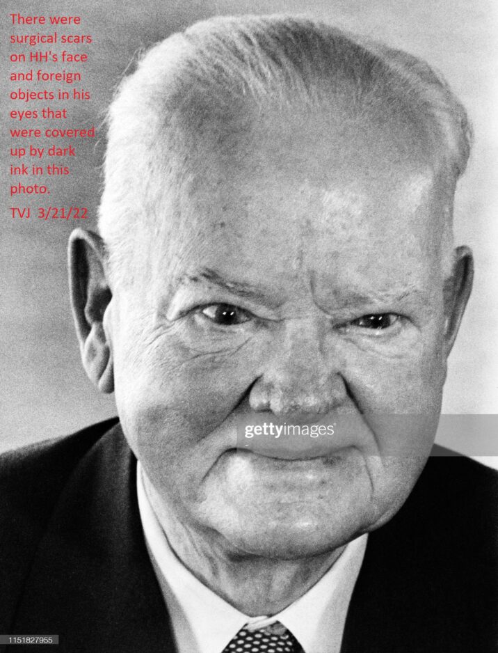 There were surgical scars on Herbert Hoover’s face and foreign objects in his eyes that were covered up by dark ink in this photo.