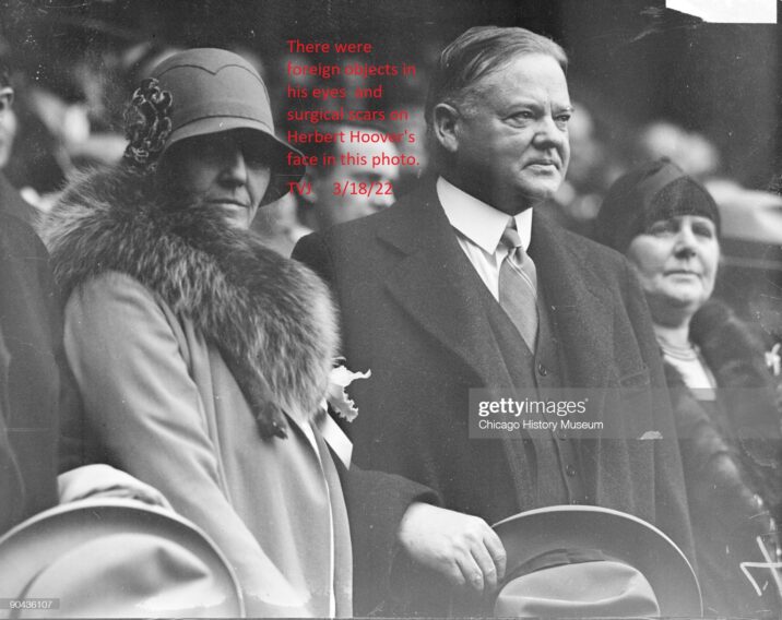There were foreign objects in his eyes and surgical scars on Herbert Hoover’s face in this photo.