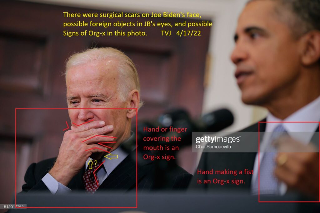 There were surgical scars on Joe Biden’s face, possible foreign objects in Joe Biden’s eyes, and possible Signs of Org-x in this photo.