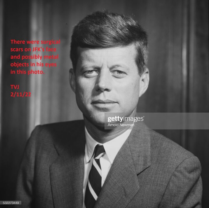 There were surgical scars on JFK’s face and possibly metal objects in his eyes in this photo.