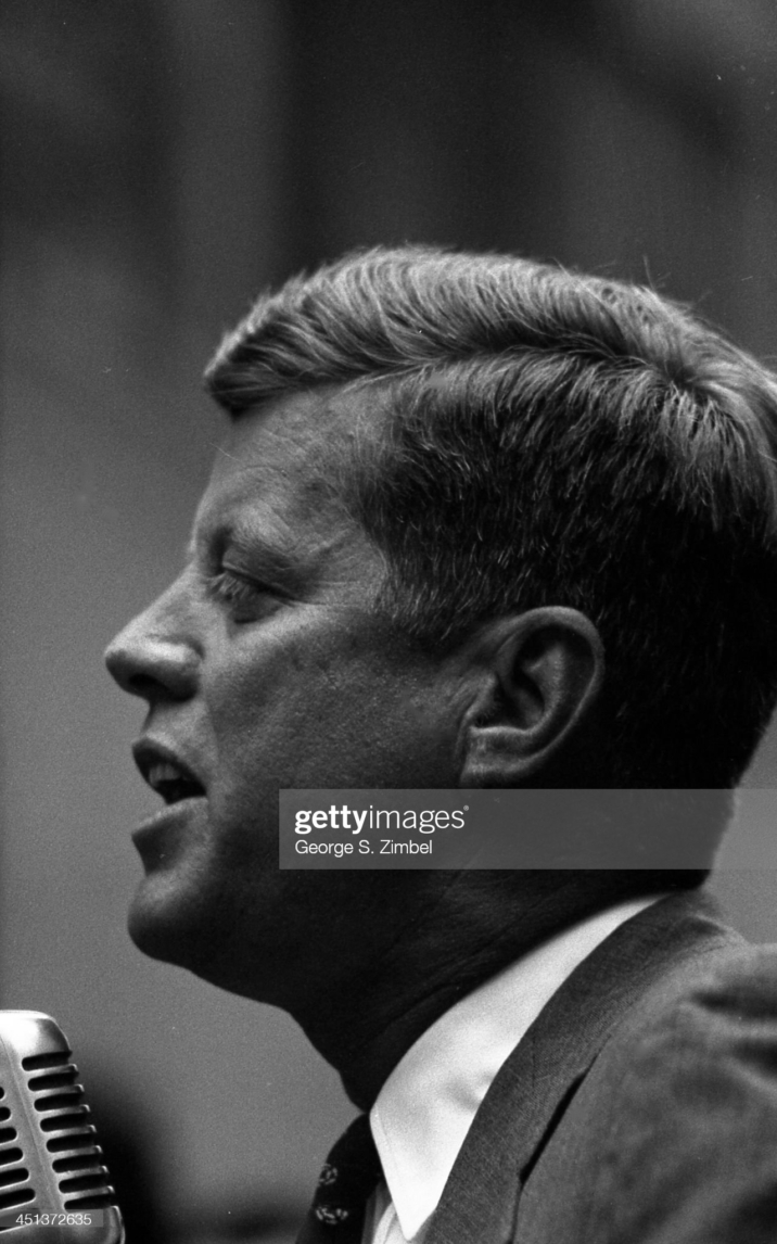 (MANDATORY CREDIT George S. Zimbel/Getty Images) Senator John F. Kennedy (1917 – 1963) speaks at a microphone during his campaign for president, New York, 1960. (Photo by George S. Zimbel/Getty Images). Date created: 01 January, 1960.”