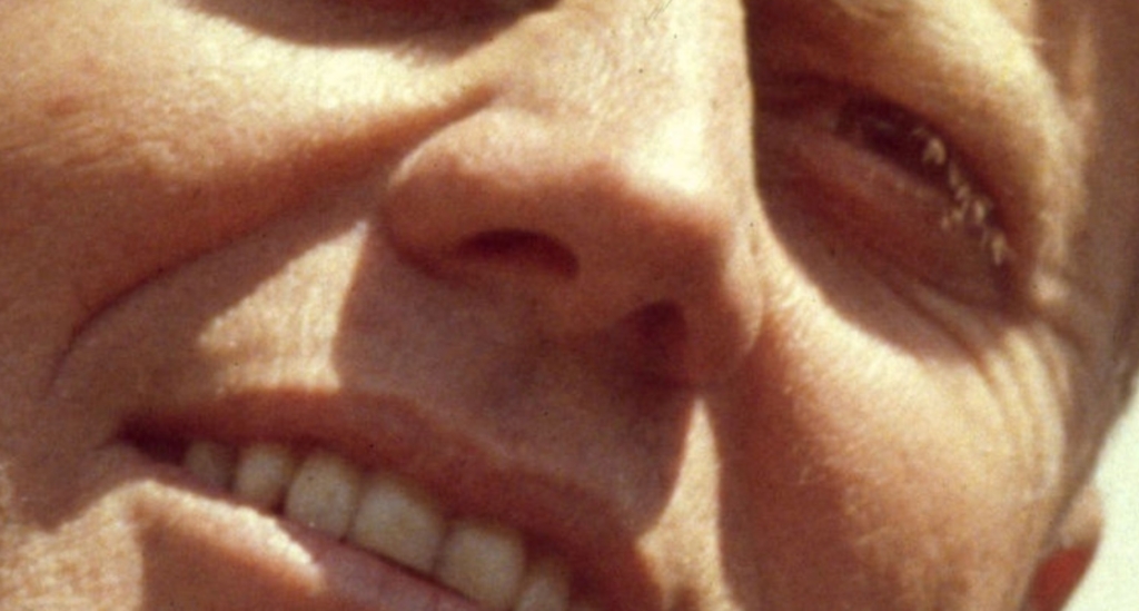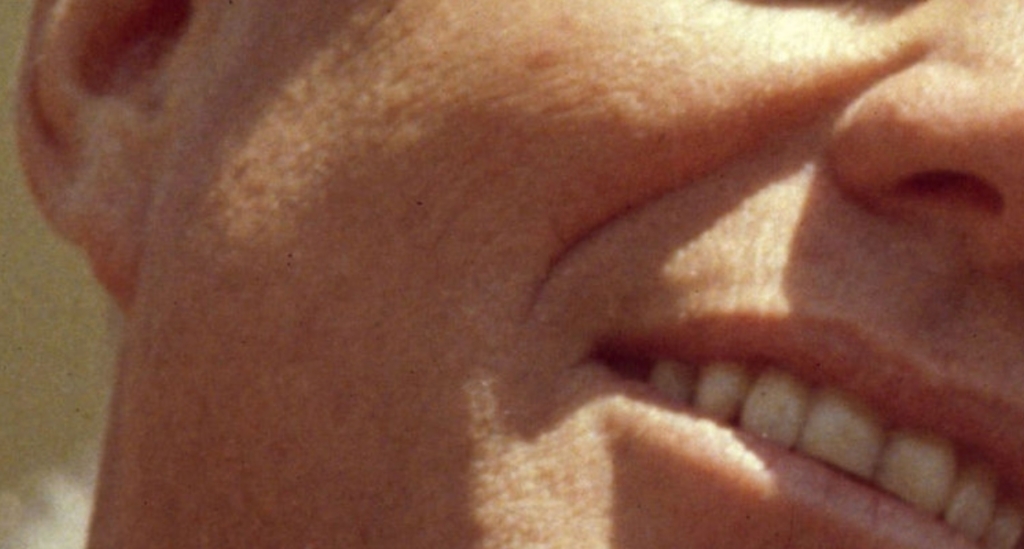 There are surgical scars on JFK’s face and foreign objects in his eyes in this photo.