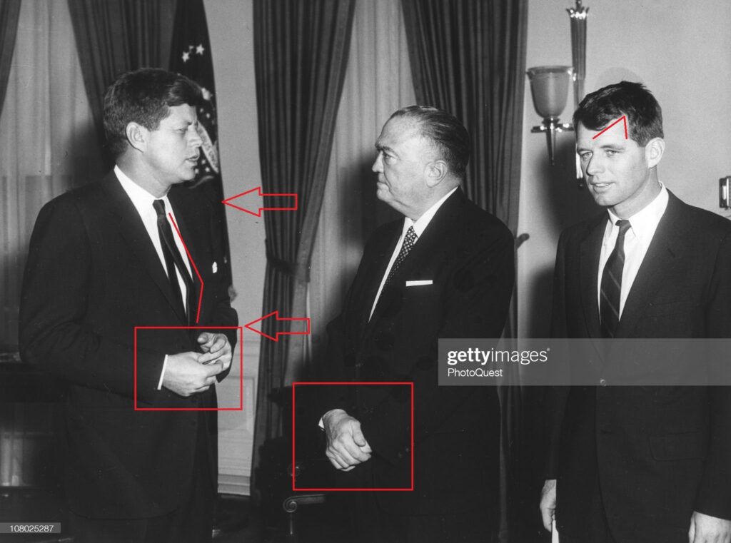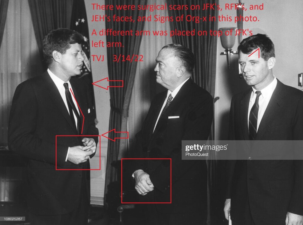 There were surgical scars on JFK’s, RFK’s, and JEH’s faces, and Signs of Org-x in this photo.