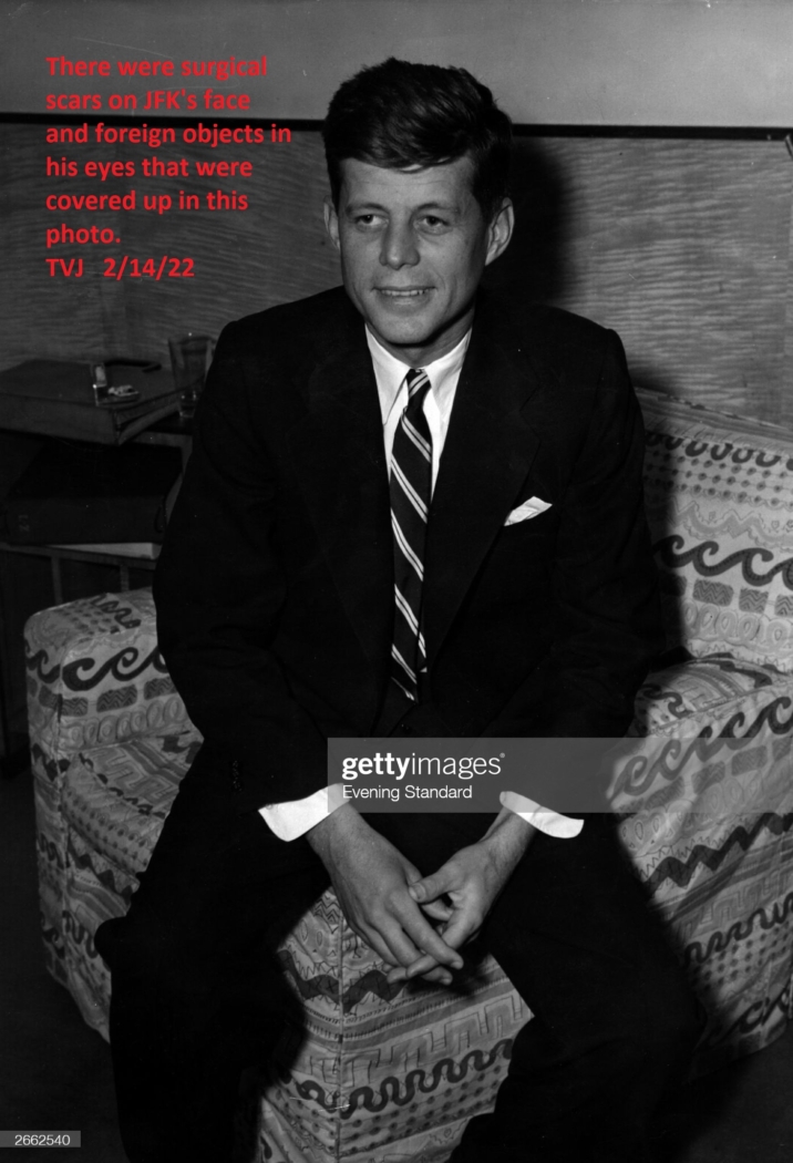 There were surgical scars on JFK’s face and foreign objects in his eyes that were covered up in this photo.