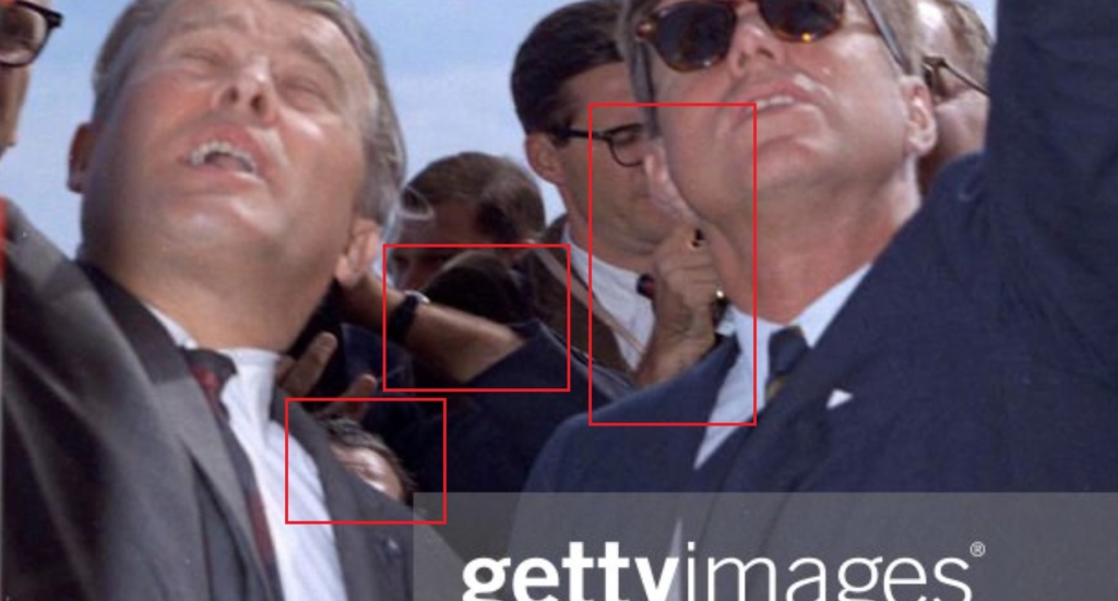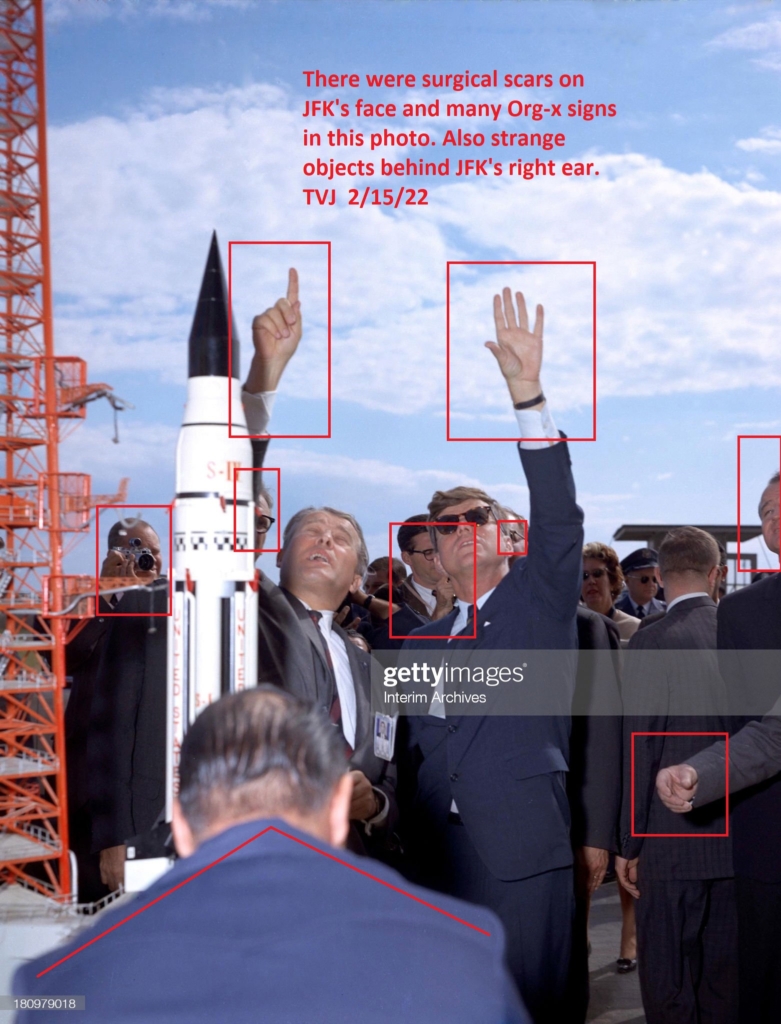 There were surgical scars on JFK’s face and many Org-x signs in this photo. Also strange objects behind JFK’s right ear.