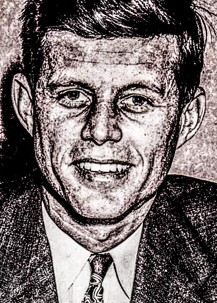John F. Kennedy from his first year in Congress in 1948 through the Photoshop filters.
