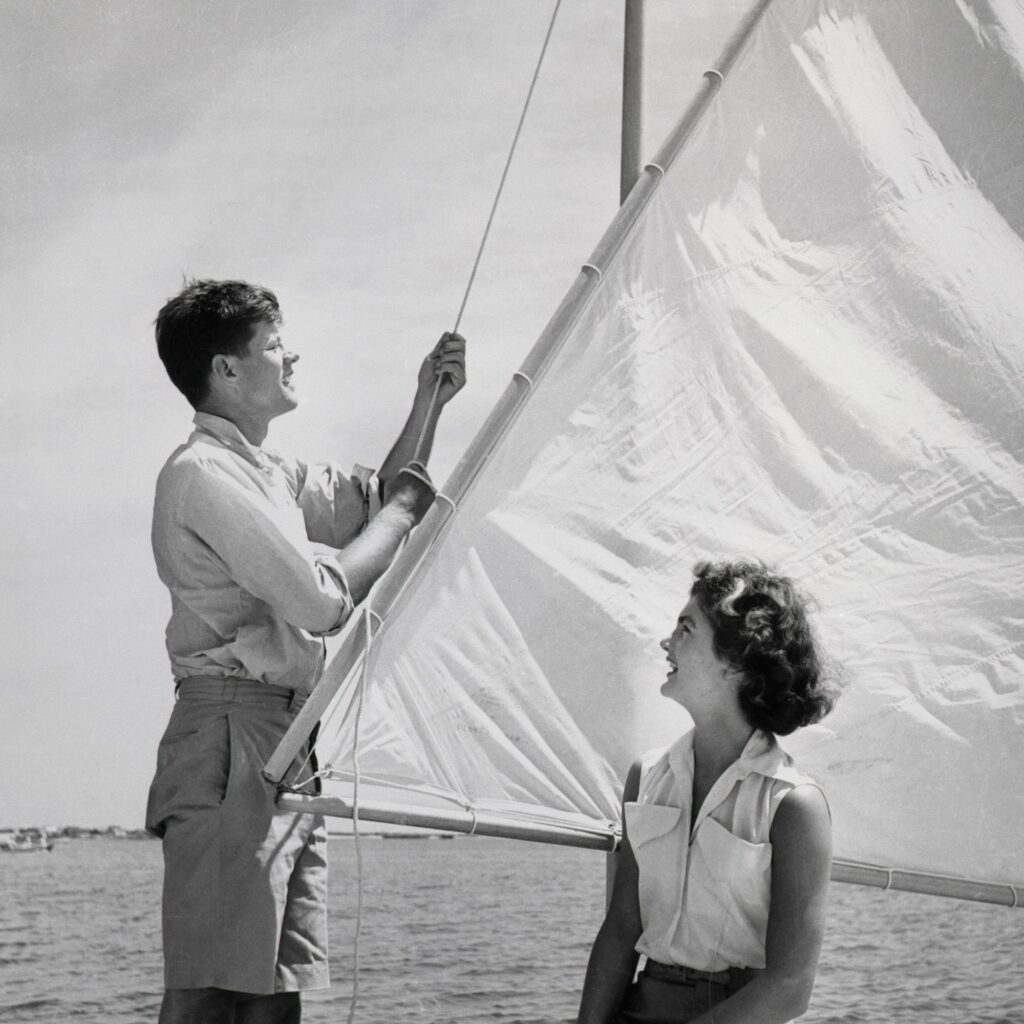 “John Kennedy and Jacqueline Bouvier on Sailboat.