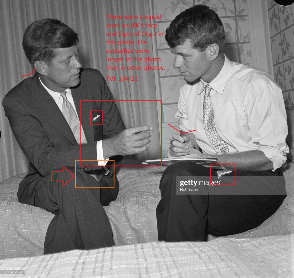 There were surgical scars on JFK’s face and Signs of Org-x in this photo. His eyelashes were longer in this photo than in other photos.