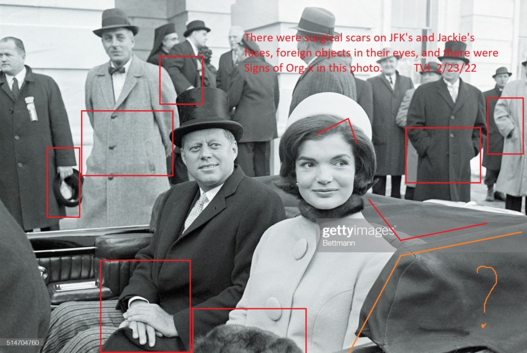 There were surgical scars on JFK’s and Jackie’s faces, foreign objects in their eyes, and Signs of Org-x in this photo.