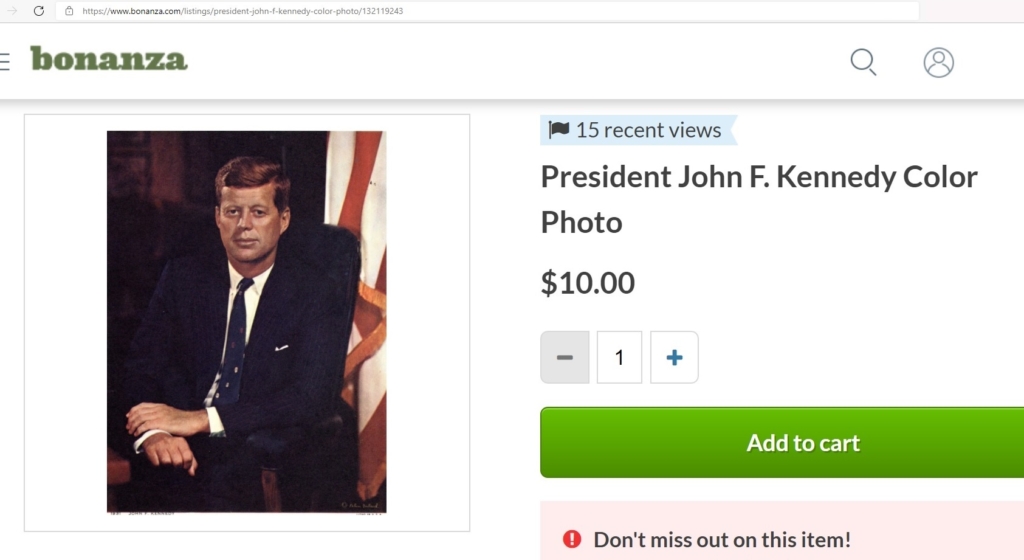 “Vintage 1961 John F. Kennedy Inauguration Portrait.”