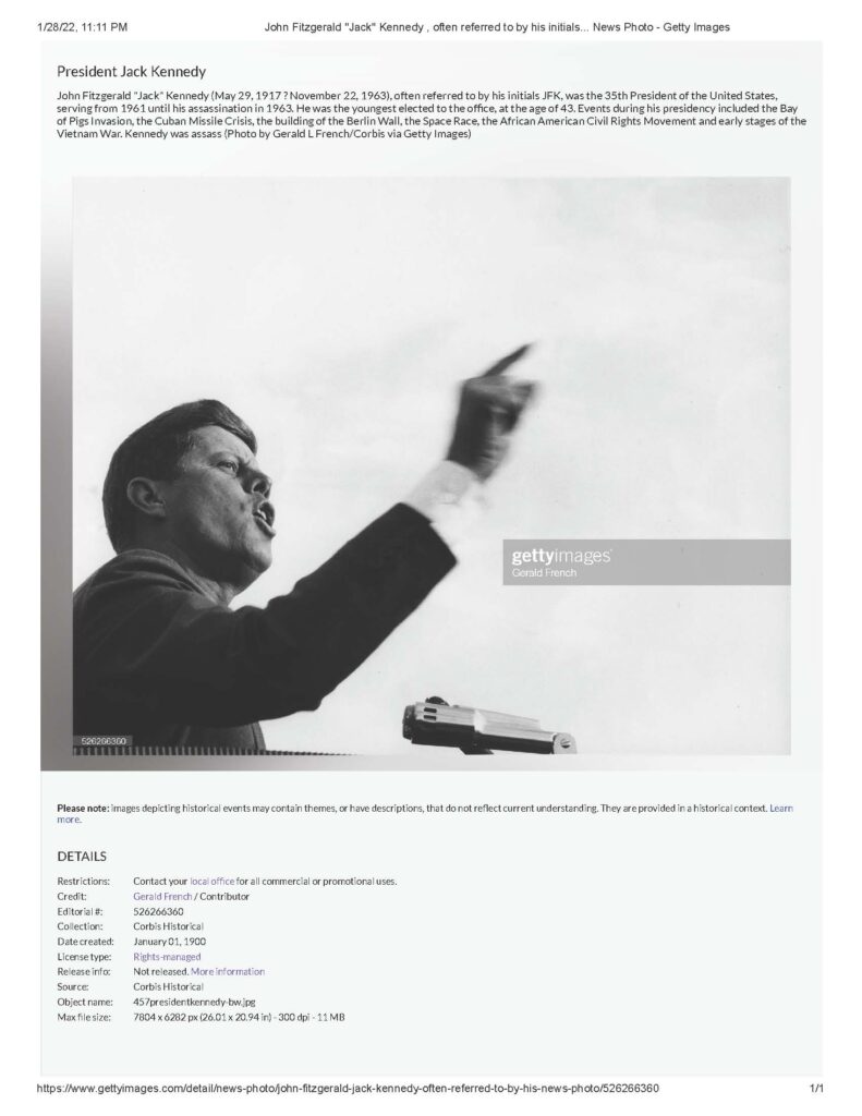 John Fitzgerald ‘Jack’ Kennedy (May 29, 1917 ? November 22, 1963), often referred to by his initials JFK, was the 35th President of the United States, serving from 1961 until his assassination in 1963. He was the youngest elected to the office, at the age of 43. Events during his presidency included the Bay of Pigs Invasion, the Cuban Missile Crisis, the building of the Berlin Wall, the Space Race, the African American Civil Rights Movement and early stages of the Vietnam War. Kennedy was assass (Photo by Gerald L French/Corbis via Getty Images). Date created: January 01, 1900.”