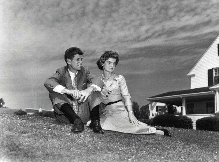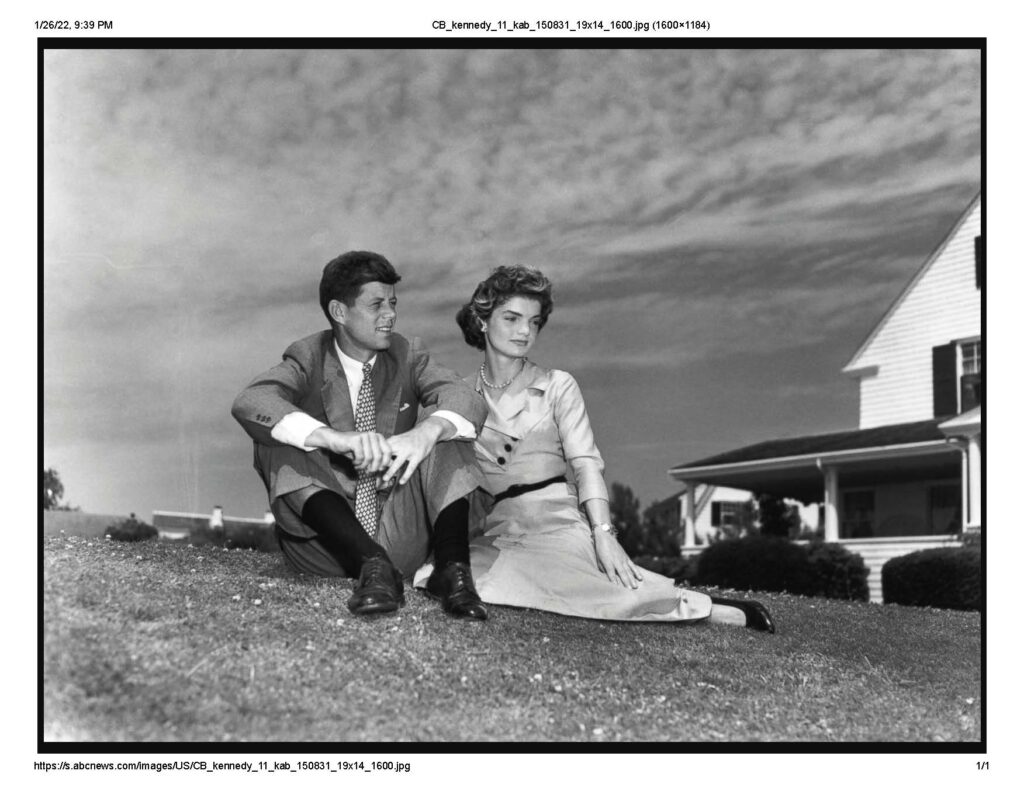 “Sen. John F. Kennedy of Massachusetts and Jacqueline Bouvier of Newport, R.I., pose for a portrait in Hyannis Port, Mass., shortly after their engagement was announced. They married on Sept. 12, 1953, in Newport, in what was considered one of the most elaborate weddings of the season.”