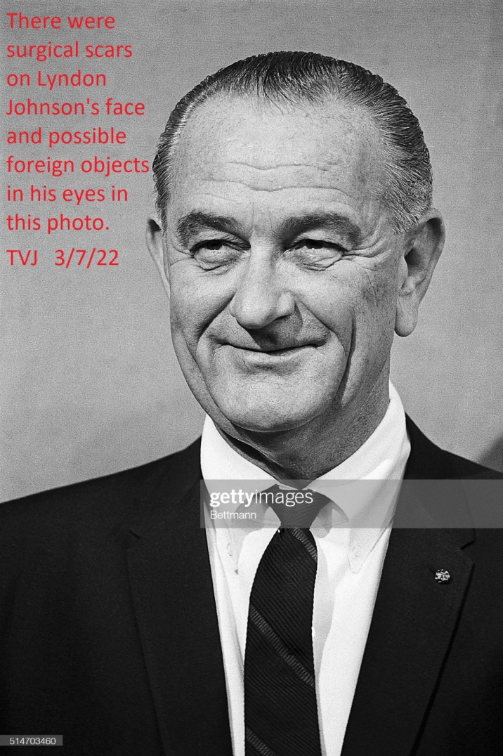 There were surgical scars on Lyndon Johnson’s face and possible foreign objects in his eyes in this photo.